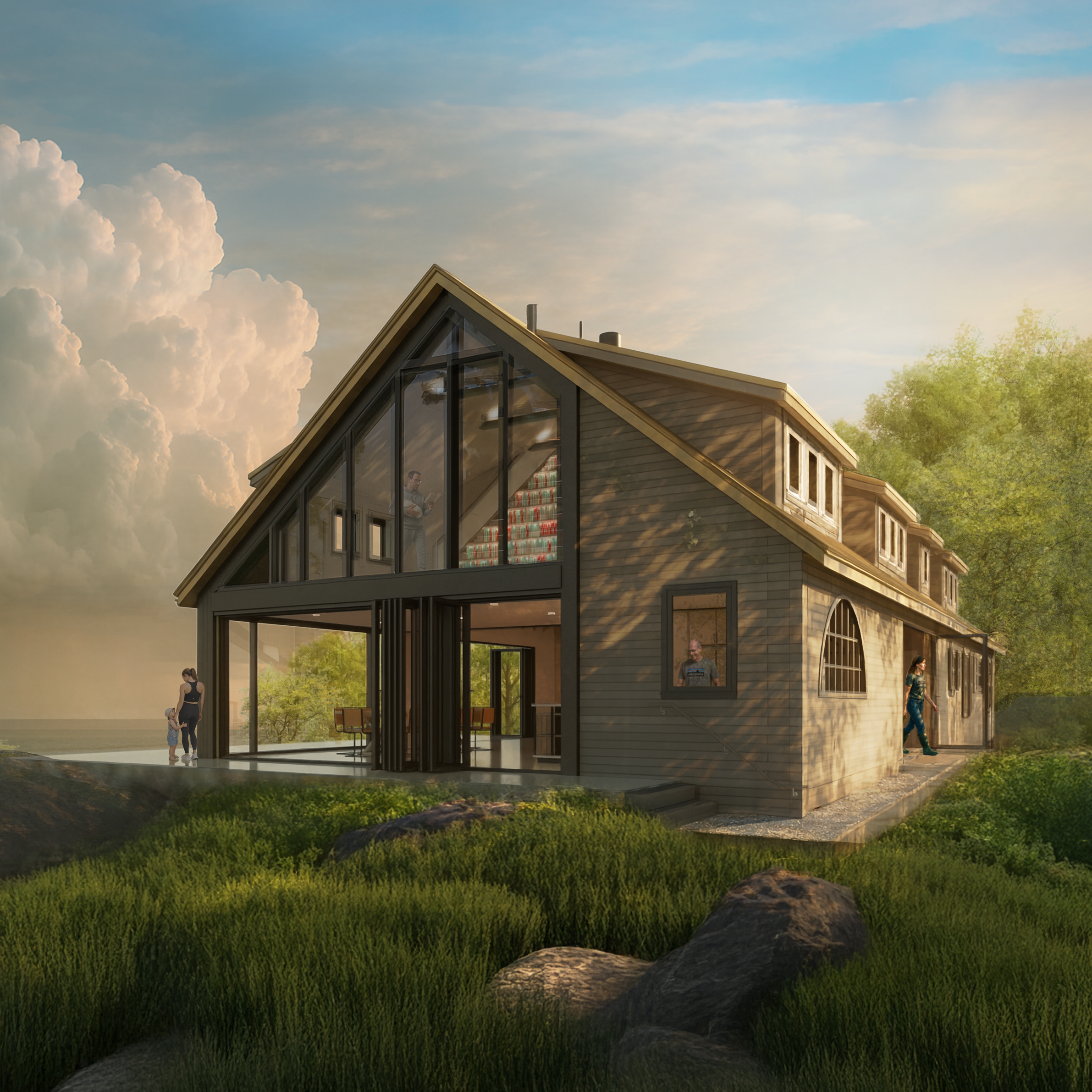 Perched above the harbor in Rockport, the R House is a 1924 timber lodge carefully reworked for a new century. Its bones—heavy timbers, broad rafters, and hand-cut joints—carry the memory of an era when craft was the measure of design. The renovation doesn’t overwrite that history; it listens to it.